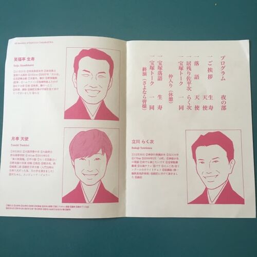 8/26(土) 18:30〜 八聖亭 立川らく次 笑福亭生寿 月亭天使 東西噺家「語ろう!宝塚」ですっかり意気投合したらく次さんと生寿さんが、落語と宝塚トークをする会「ヅカメンズ!!」に行ってまいりました。 今回、昼の部と夜の部の2回あったのですが、夜の部を選…